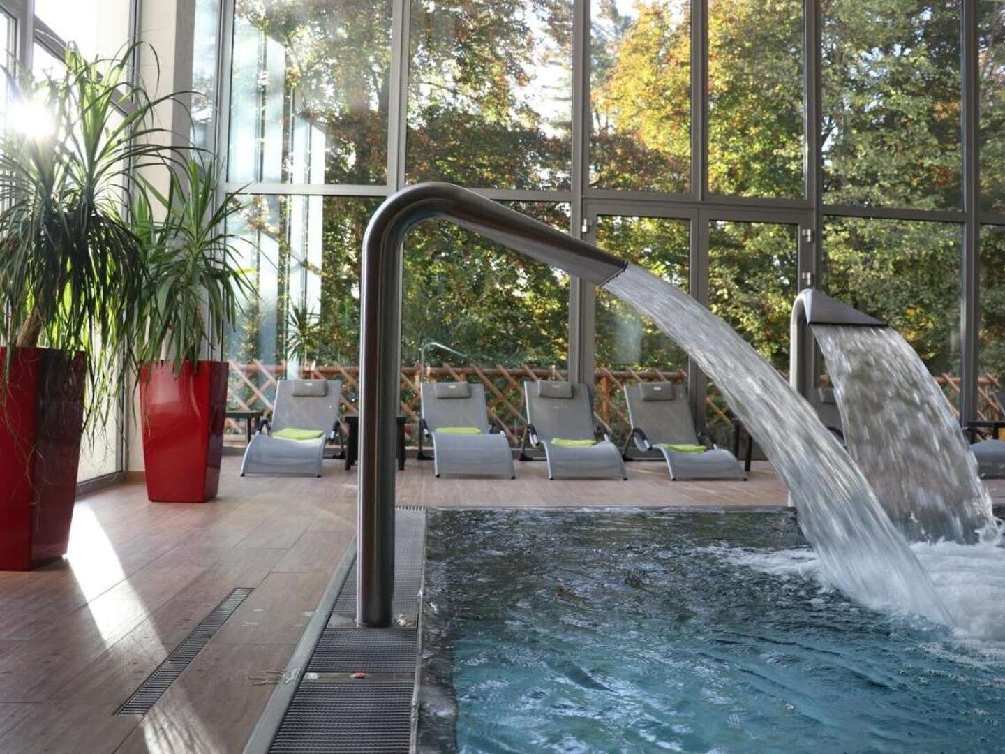 tägliche Nutzung des Wellnessbereichs mit einem modernen Hallenbad, Whirlpool und einer Sauna