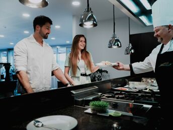 Unsere Chef Köche werden Sie mit typischer lokaler und internationaler Kulinarik verwöhnen. Beim Kochen wählen wir regional und verwenden Zutaten aus der Nähe. In unserer Küche schwören wir auf frische Lebensmittel und kennen ihren Weg vom Feld auf den Teller. Sie werden den Geschmack von „Prekmurska gibanica“ erleben, wir werden aber auch nicht andere Gaumenfreuden aus Prekmurje wie Dödöli, Bogratsch, Bujta repa, Blutwürste und Zigeunerbraten vergessen. Das Gebiet von Prekmurje und die dort lebenden Leute sind durch Gastfreundlichkeit, gutem Essen und Getränken und natürlich dem heilkräftigen Thermalwasser bekannt.
