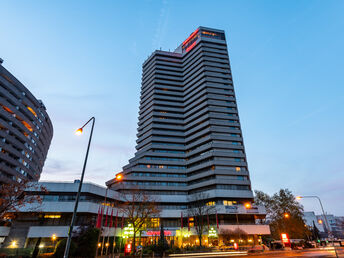 Sie wollten schon immer mal aus einem Wolkenkratzer heraus auf die Tiefe der Stadt sehen und auch die Skyline mit weiteren Hochhäusern betrachten? Dann kommen Sie nach Frankfurt am Main in das Leonardo Royal Frankfurt. Die zentrale Lage im Stadtteil Sachsenhausen hat den Vorteil, dass die gesamte Gegend sehr belebt ist. Das Leonardo Royal Frankfurt liegt im Süden von Frankfurt auf dem höchsten Punkt der Stadt, die 25 Stockwerke in dem 100 m hohen Gebäude bieten einen atemberaubenden Blick über die Skyline und Frankfurts Umgebung. Dank der guten Lage des Hotels sind Messe- und Kongresszentrum, Innenstadt und Hauptbahnhof sowohl mit dem Auto über die A3 oder A5 als auch den öffentlichen Verkehrsmitteln schnell zu erreichen. Genießen Sie mit allen Sinnen die internationale und regionale Küche des Restaurants. Schon beim Frühstück können Sie hier den Ausblick genießen. Verweilen Sie bei fruchtigen Drinks und saisonalen Aperitifs in der Leo Lounge oder verfolgen Sie Sport-Live Übertragungen in der »Leo Sportsbar«. Der Veranstaltungsbereich mit 16 Räumen wird durch die einzigartige Eventlocation, den Tower Room auf der 25./26. Etage ergänzt. Der Tower Room bietet viel Platz für Ihre Event-Ideen und kreative Veranstaltungen mit Weitblick. Der Fitnessbereich mit Sauna und Dampfbad, eine Parkgarage, kostenfreies Wlan und digitale Zeitungen vervollständigen das Hotelangebot. Bei der Buchung eines Doppelzimmer Deluxe ist der Skylineblick immer inkludiert. Für die Trips in die Mainmetropole eignen sich sowohl das eigene Auto als auch die öffentlichen Verkehrsmittel. Die Einbindung des Hotels in das Verkehrsnetz ist optimal - auch zum Flughafen sind es höchstens 20 Minuten, falls Sie per Flugzeug verreisen sollten. Lassen Sie sich fallen und erholen Sie sich bei den wundervollen Arrangements des Leonardo Royal Frankfurt. Kinder sind in unserem Hause generell kostenfrei untergebracht, außer bei benötigtem Extrabett, jedoch werden für Kinder Zusatzleistungen separat berechnet, wie z.B. die Frankfurt Card.