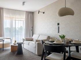 Entspannung & Natur an der Ostseeküste Im NICKEL Resort & Wellnest Grzybowo erwarten Sie moderne Suiten, exzellente Wellnesseinrichtungen und die Ruhe der Natur – nur wenige Schritte vom feinsandigen Ostseestrand entfernt. Genießen Sie 140 stilvoll eingerichtete Suiten, viele mit Galerieebene und Küchenzeile inkl. Kaffeemaschine, Toaster und Minikühlschrank. Das jodreiche Küstenklima, die umliegenden Kiefernwälder und kilometerlange Radwege machen Grzybowo zur idealen Destination für Erholung und Aktivurlaub. Entspannen Sie im Wellnessbereich mit Innenpool, Außen-Whirlpool, Kaltbad, Salz- und Kräuterbad, verschiedenen Saunen und Fitnessraum. Yoga-Terrassen, E-Bike- & Scooter-Verleih sowie eine Ladestation für E-Autos runden das Angebot ab. Lassen Sie sich im hauseigenen Restaurant kulinarisch verwöhnen oder genießen Sie einen Drink in der stilvollen Lobby Bar. Grzybowo, ein malerischer Küstenort in der Nähe von Kołobrzeg (Kolberg), ist eine wahre Enklave der Natur, Ruhe und ganzheitlichen Erholung. Die weitläufigen Sandstrände, sanft umhüllt vom Rauschen der Wellen und dem Duft der Küstenvegetation, schaffen ideale Bedingungen für die Regeneration von Körper und Geist. Das jodreiche Mikroklima und die saubere, salzhaltige Luft fördern tiefes Atmen, verbessern das Wohlbefinden und unterstützen die Gesundheit. Die Küstenkiefernwälder, voll aromatischer ätherischer Öle, laden zu Spaziergängen ein, die es ermöglichen, inneren Frieden und Gleichgewicht zu finden. Radwege, die Grzybowo mit Kołobrzeg und den umliegenden Ortschaften verbinden, bilden die ideale Kulisse für aktive Erholung und fördern sowohl die körperliche als auch die geistige Regeneration. Unabhängig von der Jahreszeit bietet die Gegend die Möglichkeit zur ganzheitlichen Erholung – im Sommer lädt sie zum Sonnenbaden und Schwimmen im Meer ein, im Herbst und Winter fördert sie Ruhe und Regeneration beim Rauschen der Wellen, und im Frühling erwacht sie zum Leben und erfüllt mit Energie und Inspiration. Es ist ein Ort, an dem jeder seinen Raum zur Erneuerung und zum bewussten Sein im „Hier und Jetzt“ findet