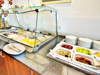 Besonders verwöhnt werden Sie bei unserem Halbpensions-Menü. Aufmerksamer Service, ein stilvoll eingedeckter Tisch, dazu ein exklusiver Tropfen aus der gut sortierten Weinkarte und der Abend wird schön. Unser Menü lässt Ihnen die Auswahl bei allen drei Gängen: Vorspeise oder Salat-Teller, Fisch- oder Fleischgericht als Hauptgang, Dessert oder Käsevariation.